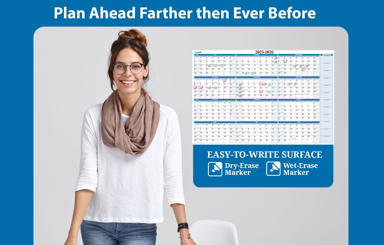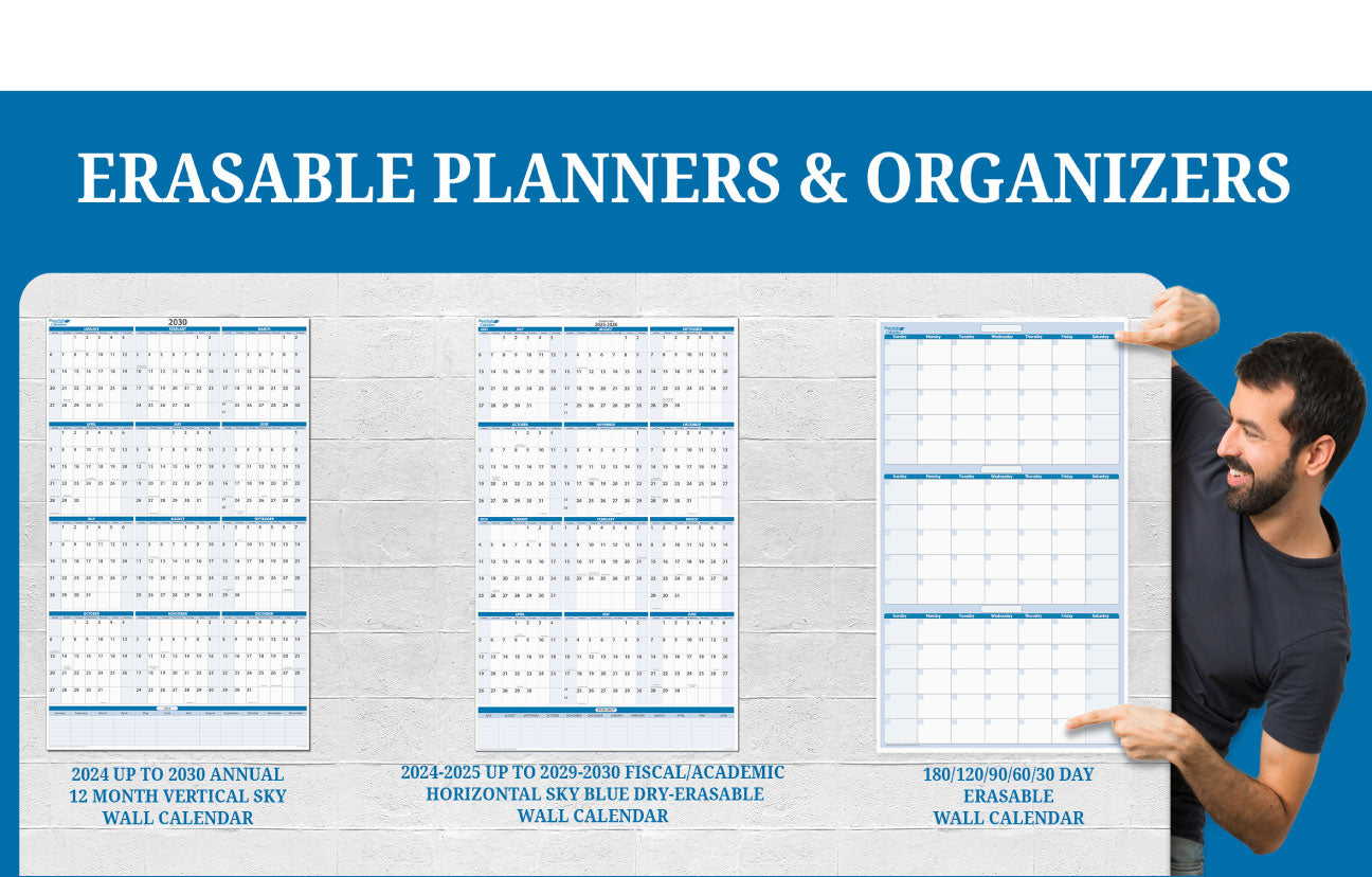 Dated Erasable Wall Calendars with Next Year Planning Area up to 2030